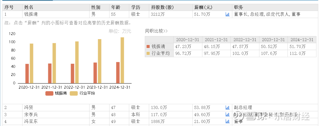 据东方财富网数据,保丽洁董事长兼总经理钱振清2024年所获薪酬为51.7万元,相较上年薪酬50.52万元微涨。