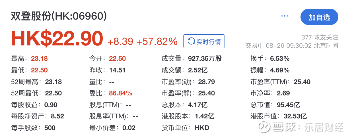 乐居财经 刘治颖8月26日,双登股份(06960)在港交所挂牌上市,联席保荐人为中金公司、建银国际、华泰国际,开盘涨57.82%,总市值95.45亿港元。