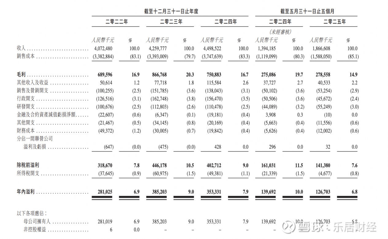 2022年至2024年及2025年前5个月,双登股份收入分别为40.72亿元、42.60亿元、44.99亿元、18.67亿元,年内溢利分别为2.81亿元、3.85亿元、3.53亿元、1.27亿元。