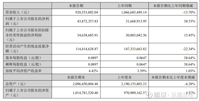 报告显示,和晶科技公司上半年营业收入为9.21亿元,同比下降13.70%;归母净利润为4387.24万元,同比增长38.53%;扣非归母净利润为3463.87万元,同比增长15.45%;基本每股收益0.09元。