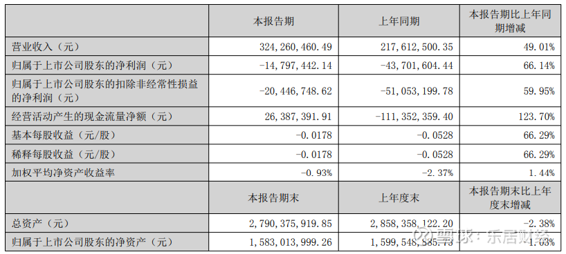 报告显示,珈伟新能公司上半年营业收入为3.24亿元,同比增长49.01%;归母净利润为-1479.74万元,同比增长66.14%;扣非归母净利润为-2044.67万元,同比增长59.95%;基本每股收益-0.02元。