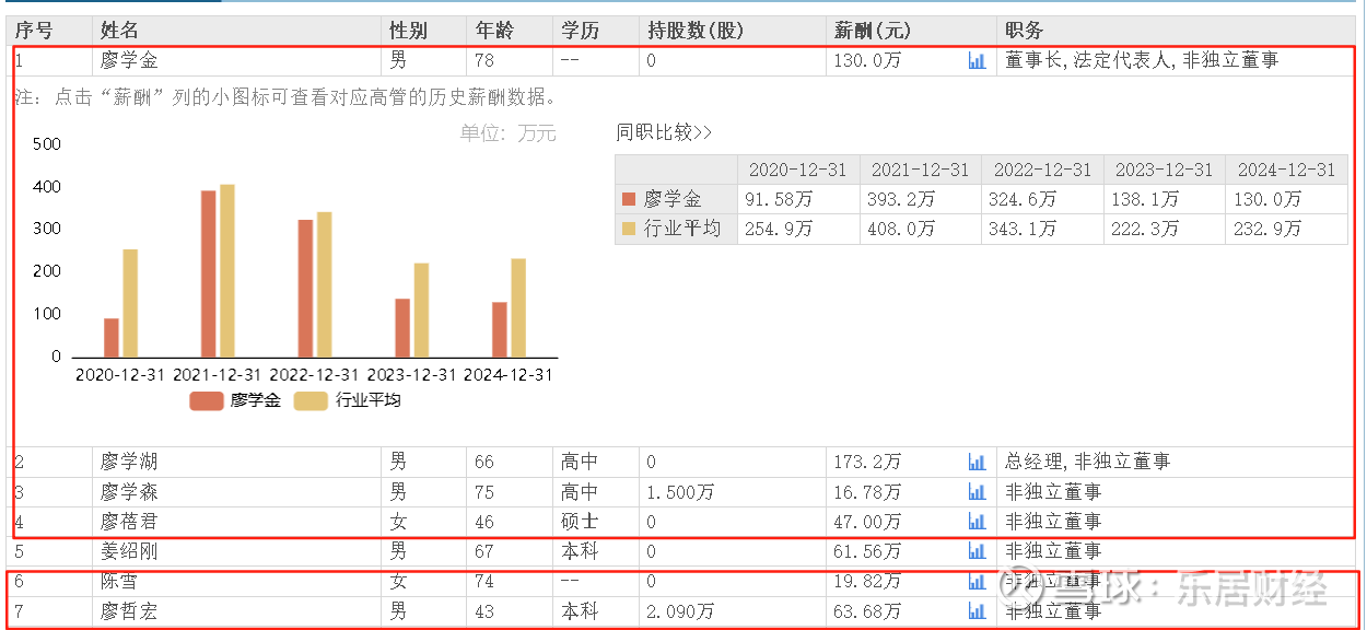 据东方财富网数据,信隆健康董事长廖学金2021-2024年所获薪酬分别为393.2万、324.6万、138.1万和130万元,连续3年降薪。