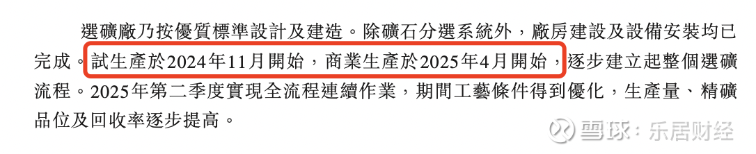 值得一提的是,除矿石分选系统外,厂房建设及设备安装均已完成。试生产于2024年11月开始,商业生产于2025年4月开始,逐步建立起整个选矿流程。2025年第二季度实现全流程连续作业,期间工艺条件得到优化,生产量、精矿品位及回收率逐步提高。