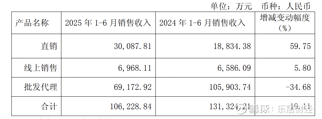 按销售渠道分类,2025年上半年,伊力特直销收入3.01亿元,同比增长59.75%;线上销售收入6968.11万元,同比增长5.8%;批发代理收入6.92亿元,同比减少34.68%。