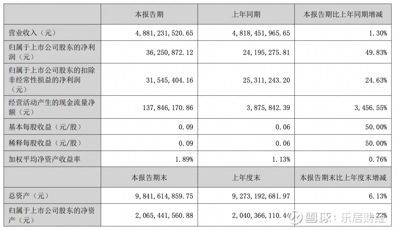 2025年上半年,漱玉平民营业收入为48.81亿元,同比上升1.3%;归属于上市公司股东的净利润为3625.08万元,同比上升49.83%;归属于上市公司股东的扣除非经常性损益的净利润为3154.54万元,同比上升24.63%;经营活动产生的现金流量净额为1.38亿元,同比增长3456.55%。