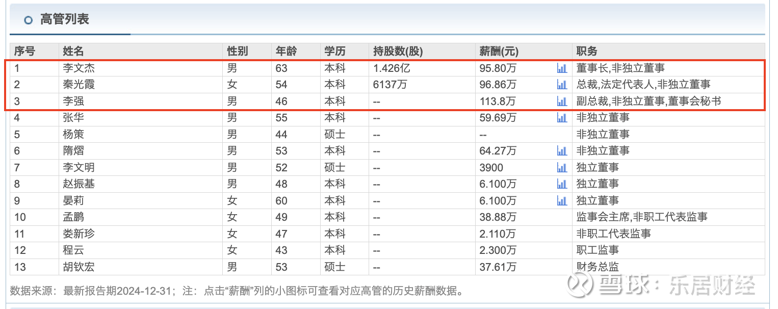 据瑞财社查阅,2024年,漱玉平民董秘兼副总裁李强年薪113.8万元,全司最高。而董事长李文杰薪酬95.8万元,总裁秦光霞薪酬96.86万元。