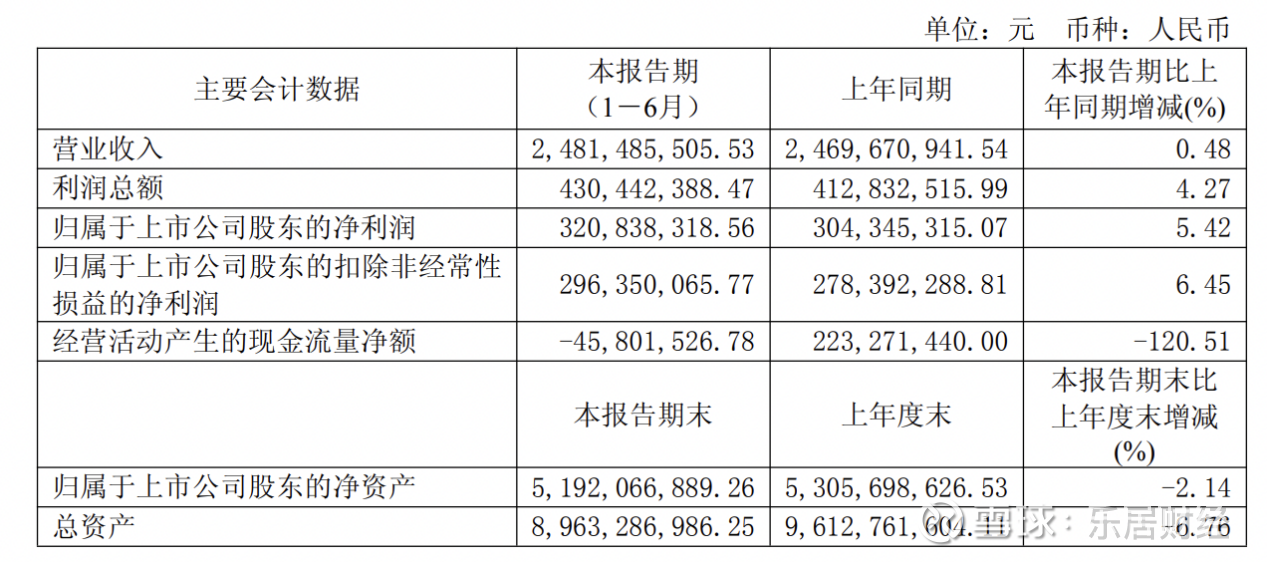 2025年上半年,老白干酒实现营业收入24.81亿元,同比增长0.48%;归属于上市公司股东的净利润3.21亿元,同比增长5.42%;归属于上市公司股东的扣除非经常性损益的净利润2.96亿元,同比增长6.45%。