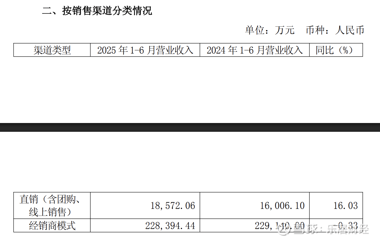 按销售渠道分类,2025年上半年,老白干酒直销(含团购、线上销售)营收为1.86亿元,同比增长16.03%;经销商模式营收为22.84亿元,同比减少0.33%。