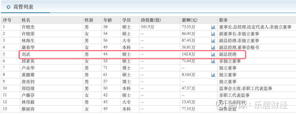 合兴包装44岁副总经理刘武是公司薪酬最高的高管,2024年薪酬142.8万元,是董事长兼总经理许晓光的近两倍。