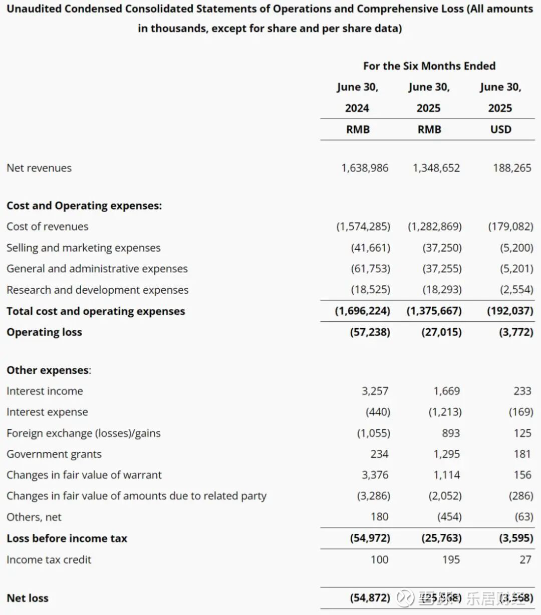 2025年上半年,车车科技净营收为13.49亿元(约1.88亿美元),经调整净亏损为1050万元,较上年同期的2440万元收窄56.9%。