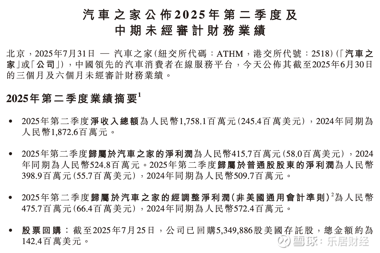 最新财报显示,汽车之家2025年第二季度净收入总额为17.581亿元,2024年同期为18.726亿元;归属于汽车之家的净利润为4.157亿元,2024年同期为5.248亿元。