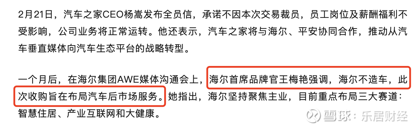 在海尔集团AWE媒体沟通会上,海尔首席品牌官王梅艳强调,海尔不造车,此次收购旨在布局汽车后市场服务。她指出,海尔坚持聚焦主业,目前重点布局三大赛道:智慧住居、产业互联网和大健康。