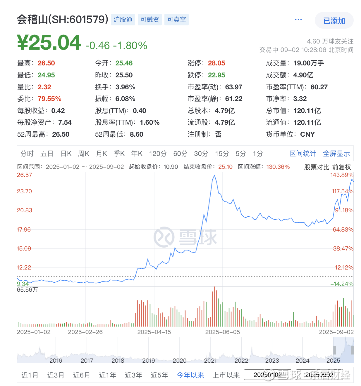 截至发稿,会稽山报股价年内区间涨幅为130.36%,最新市值120.11亿元;古越龙山年内区间涨幅则为19.07%,最新市值95.71亿元。