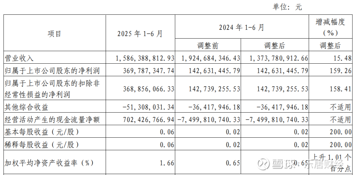 2025年,公司实现营业收入15.86亿元,同比增长15.48%;归母净利润3.70亿元,同比增长159.26%;基本每股收益0.06元。