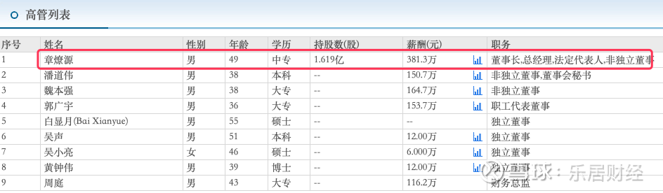 董事长兼总经理为章燎源,今年49岁。