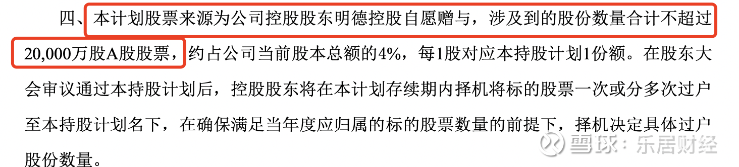 该计划员工无需出资,股票来源是公司控股股东明德控股自愿无偿赠与的不超过2亿股A股股票。