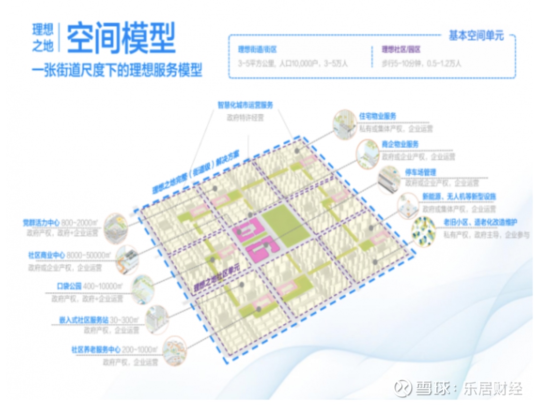 区别于传统的物业管理,“理想之地”首先要做的就是把管理单元从小区拓展到街道或者社区,实现3到5平方公里大小的片区统筹。