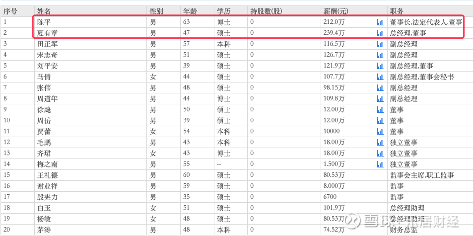 马应龙董事长是63岁陈平,总经理是47岁夏有章。