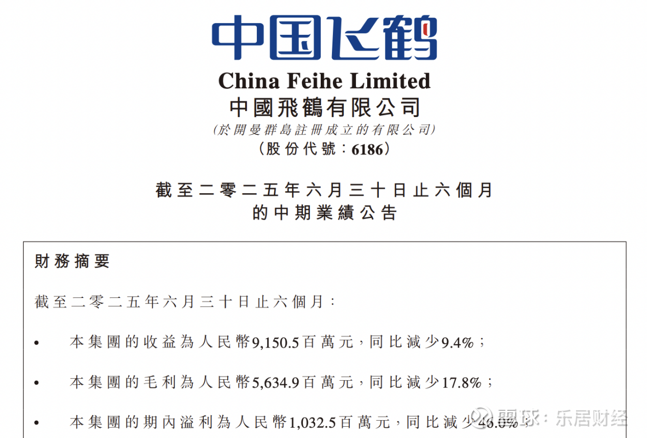 瑞财经 刘治颖近日,中国飞鹤(06186)披露2025年上半年业绩报告,实现收益为91.51亿元,同比下降9.4%;毛利为56.35亿元,同比减少17.8%;期内利润10.33亿元,同比下滑46%。