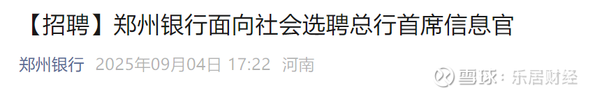 瑞财经 王敏9月4日,郑州银行股份有限公司(以下简称“郑州银行”)发布总行首席信息官选聘公告。