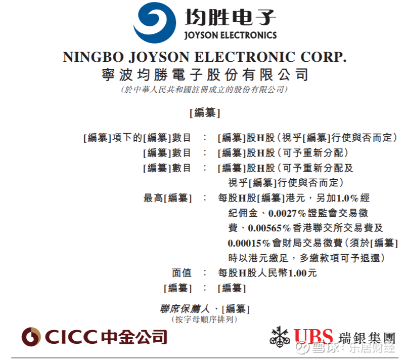 瑞财经 严明会近日,据港交所官网,宁波均胜电子有限公司(以下简称“均胜电子”)在港交所递交IPO申请,联席保荐人为中金公司、瑞银集团。