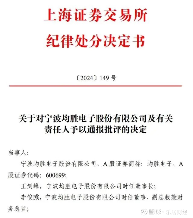 Wind数据显示,均胜电子上市以来累计募资466.07亿元,但去年8月,均胜电子时任实控人王剑锋,财务总监李俊彧,董事会秘书俞朝辉三人被上交所通报批评。