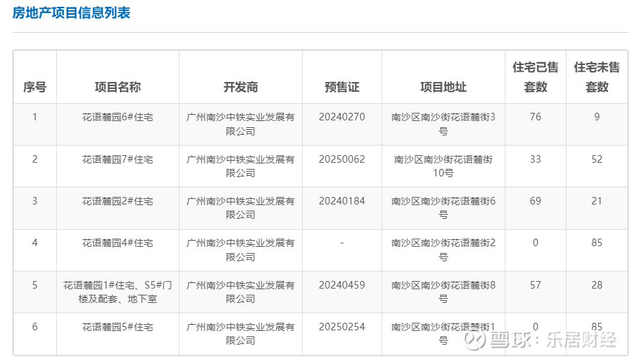 粤进深 严明会 据广州市住建局,近日,位于南沙的中国铁建·花语上城(备案名:花语麓园)5#住宅拿到预售证,批准预售房源85套,预售总建筑面积10290.95㎡,由广州南沙中铁实业发展有限公司开发。
