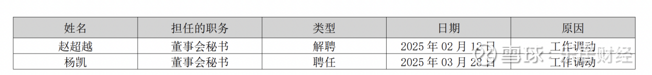 董监高变动方面,2025年2月,因工作调动,董事会秘书赵超越被解聘;2025年3月,杨凯被聘任为董事会秘书。