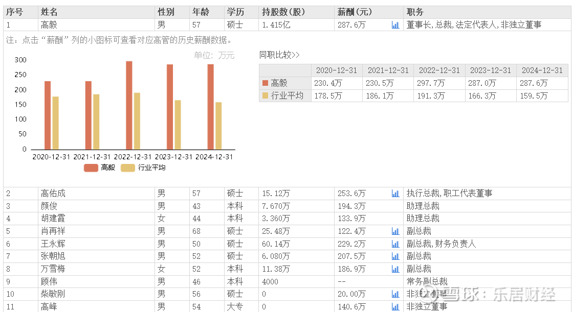 据东方财富网数据,益丰药房董事长兼总裁高毅2024年领薪287.6万元,董事高峰同年领薪140.6万元。