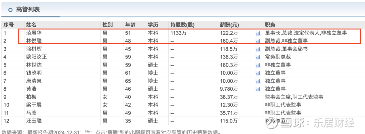 据瑞财社查阅,2024年,青松股份副总裁林悦聪薪酬160.4万元,高于总裁范展华薪酬122.2万元。