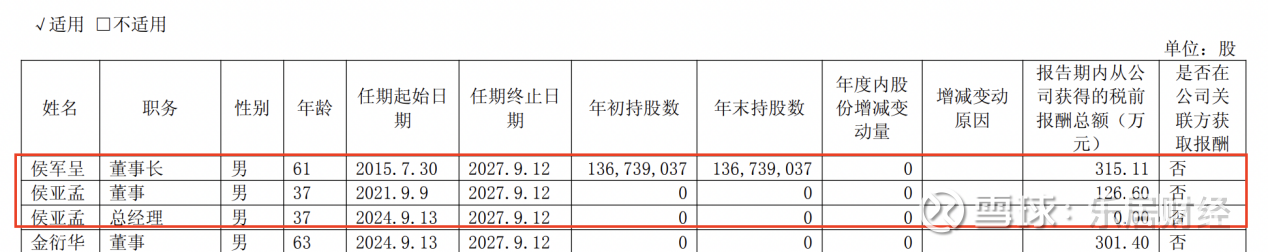 薪酬方面,侯军呈、侯亚孟2024年薪酬分别为315.11万元、126.6万元。
