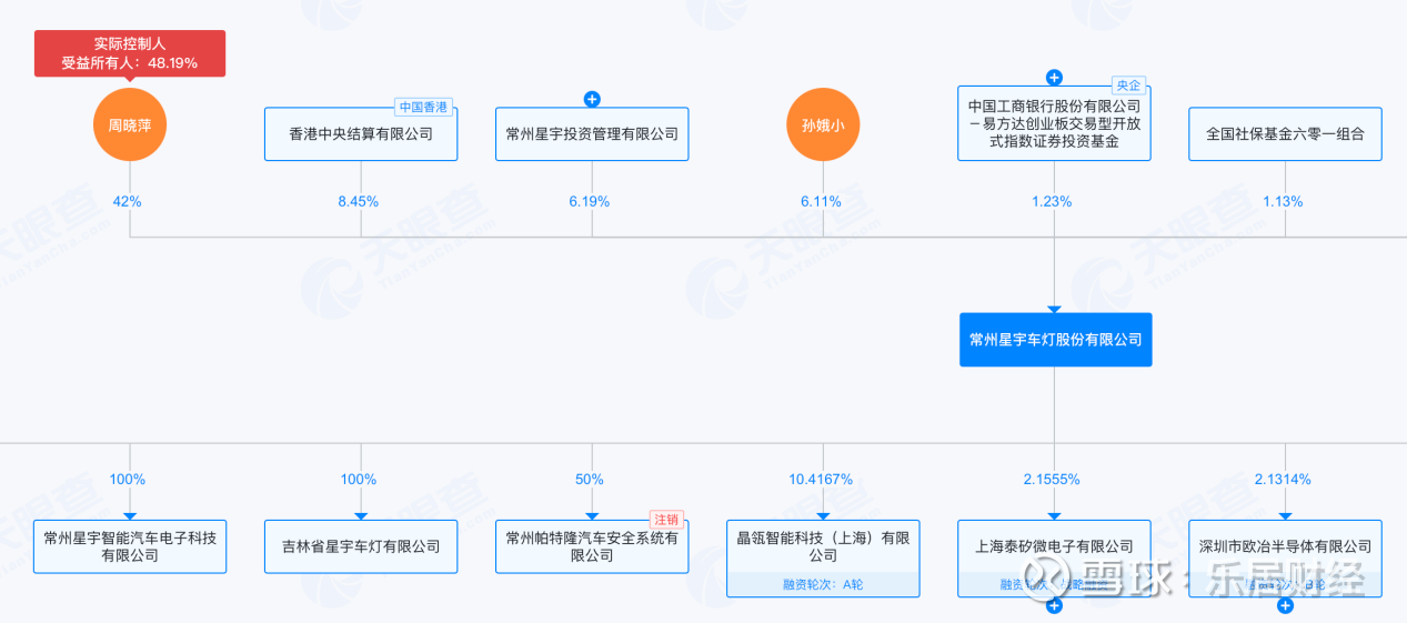 据天眼查,周晓萍作为星宇股份的第一大股东兼实际控制人,通过直接和间接持股,合计持有48.19%股权,而其母亲孙娥小,则持股6.11%,位列第四大股东。