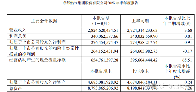 瑞财经 钟鸣辰 成都燃气(SH603053)近日发布2025年半年报,上半年同比营收利润双增。
