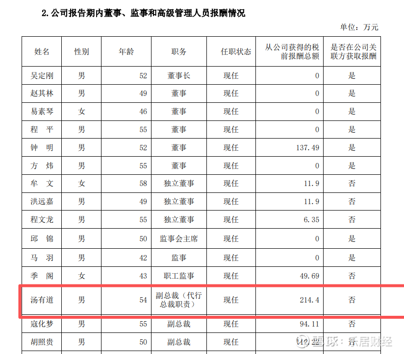 汤有道2024年从公司获得的税前报酬总额为214.4万元。
