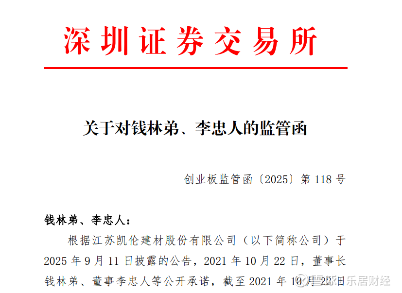 9月11日,凯伦股份(300715.SZ)董事长钱林弟、董事李忠人收到了监管函。