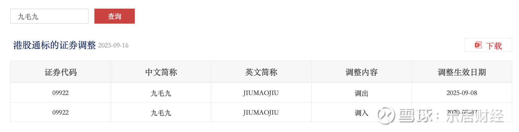 瑞财经 吴文婷 近日,深交所发布公告,港股通标的证券名单发生调整并自9月8日起生效。根据最新名单,包括九毛九(09922.HK)在内的总计20只标的证券被调出。