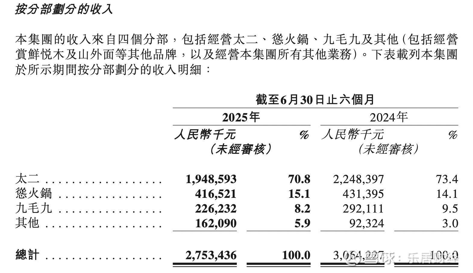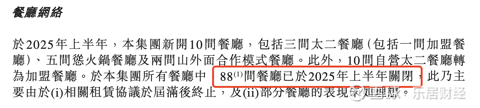 截至2025年6月30日,九毛九集团拥有695间自营餐厅及34间加盟/合作模式餐厅,其中88间餐厅于上半年关闭,主要由于相关租赁协议于届满后终止,及部分餐厅的表现未如理想。