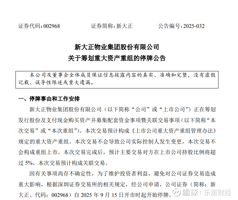 乐居财经 李兰 新大正拟筹划重大资产重组,股票停牌。