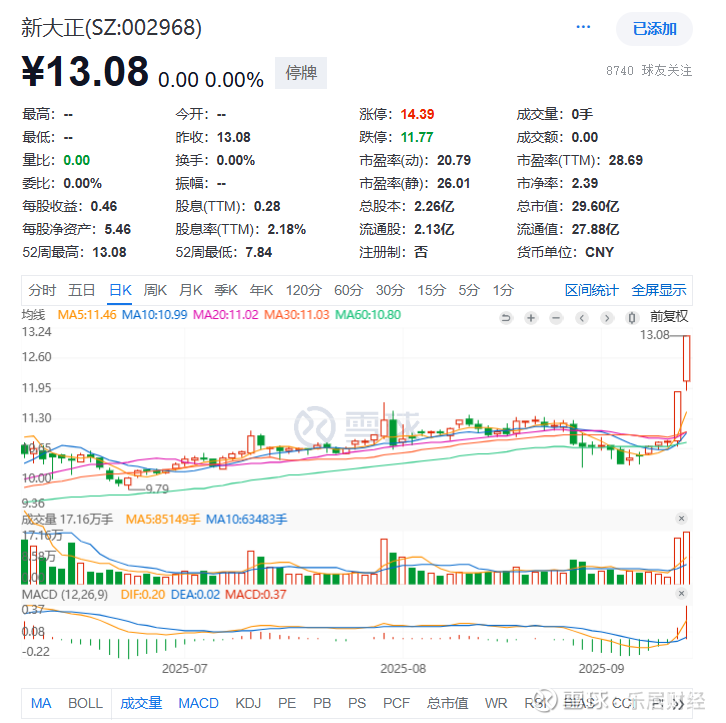 在新大正正式发布公告前,9月11日和9月12日,新大正股价升至13.08元/股。