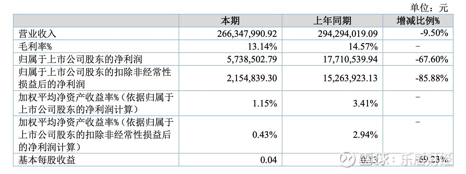 2025上半年,公司实现营业收入为2.66亿元,同比减少9.5%;归属于上市公司股东的净利润为573.85万元,同比减少67.6%。