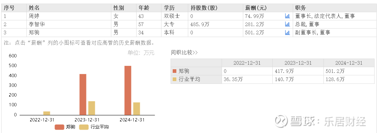 据东方财富网数据,杉杉股份董事长周婷2024年领薪74.99万元,副董事长郑驹同年领薪501.2万元。