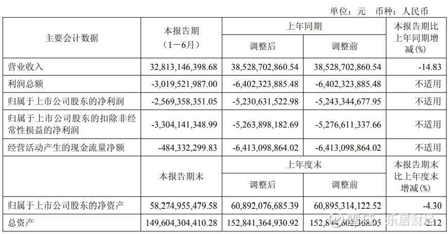 报告显示,隆基绿能公司上半年营业收入为328.13亿元,同比下降14.83%;归母净利润为-25.69亿元,同比增长51.00%;扣非归母净利润为-33.04亿元,同比增长37.23%;基本每股收益-0.34元。