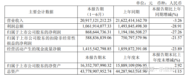 报告显示,天能股份公司上半年营业收入为209.17亿元,同比下降3.26%;归母净利润为8.69亿元,同比下降27.26%;扣非归母净利润为5.89亿元,同比下降21.57%;基本每股收益0.89元。