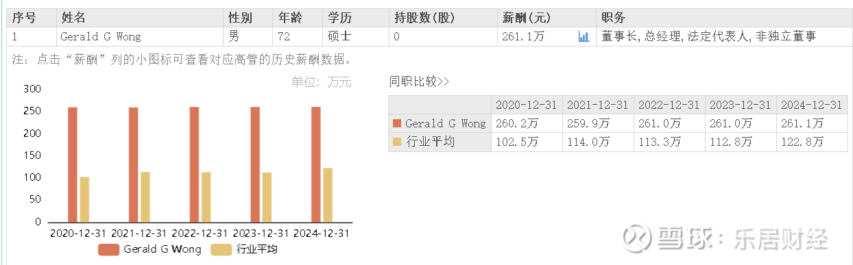 据东方财富网数据,剑桥科技董事长兼总经理Gerald G Wong(黄钢)2024年领薪261.1万元,与上年薪酬基本持平。