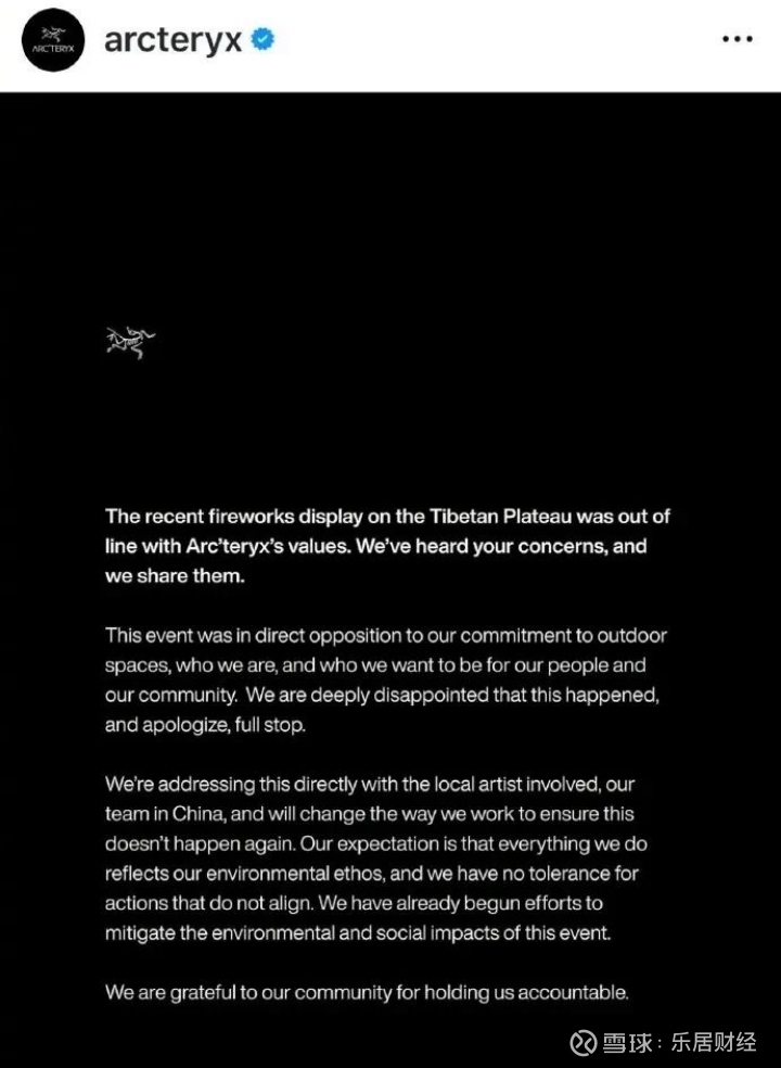 海外版称,对青藏高原烟花表演深感遗憾,此行为与品牌环保价值观及期望不符,郑重致歉。同时,还提到“正与相关艺术家和中国团队沟通,调整工作方式避免类似情况。”