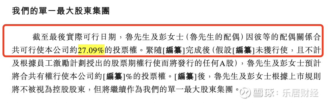 IPO前,鲁楚平及彭惠因配偶关系合共可行使公司约27.09%的投票权。