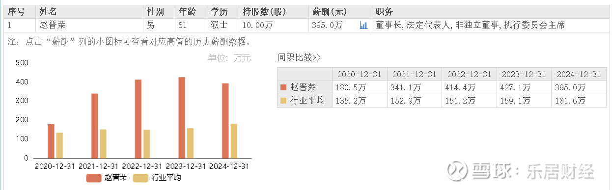 据东方财富网数据,北方华创董事长赵晋荣2024年所获薪酬为395万元,相较上年薪酬427.1万元降薪7.52%。