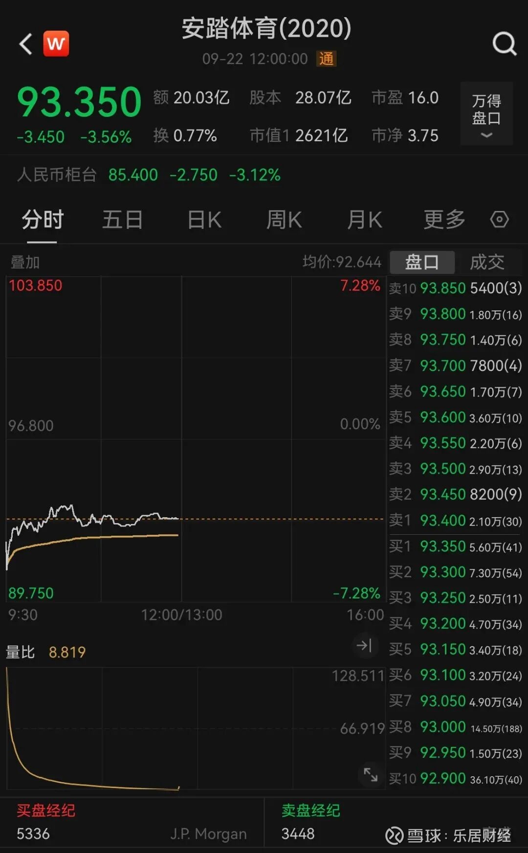 根据事件发酵后首个交易日的港股午间收盘数据显示,在当日恒生指数下跌0.99%、市场整体表现疲软的背景下,始祖鸟母公司安踏体育(2020.HK)的股价却大幅下跌了3.56%,市值蒸发超百亿港元。