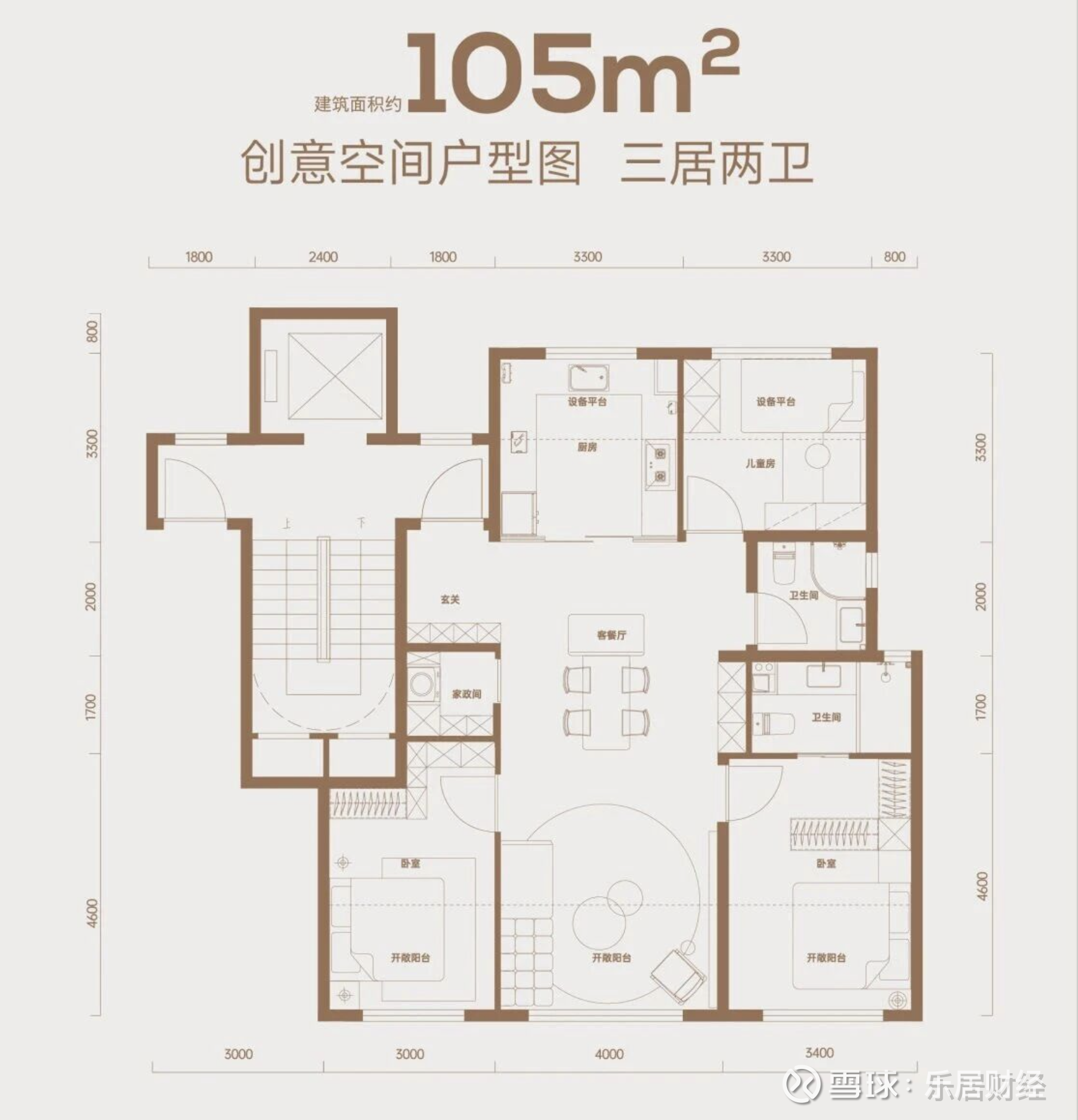 建面105-148㎡,南北均有大尺度赠送,综合使用率97%-98%。