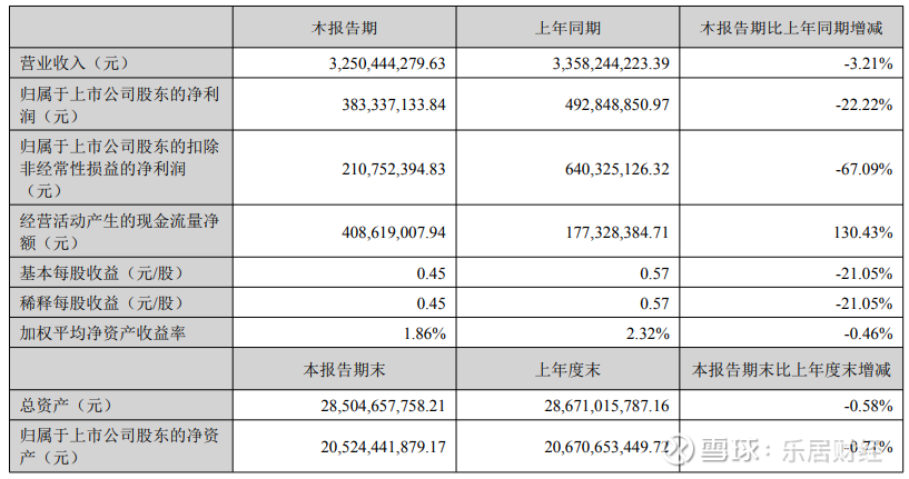报告显示,泰格医药公司上半年营业收入为32.50亿元,同比下降3.21%;归母净利润为3.83亿元,同比下降22.22%;扣非归母净利润为2.11亿元,同比下降67.09%;基本每股收益0.45元。